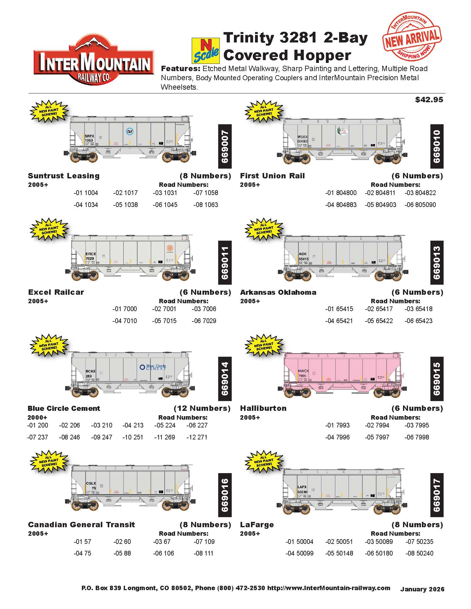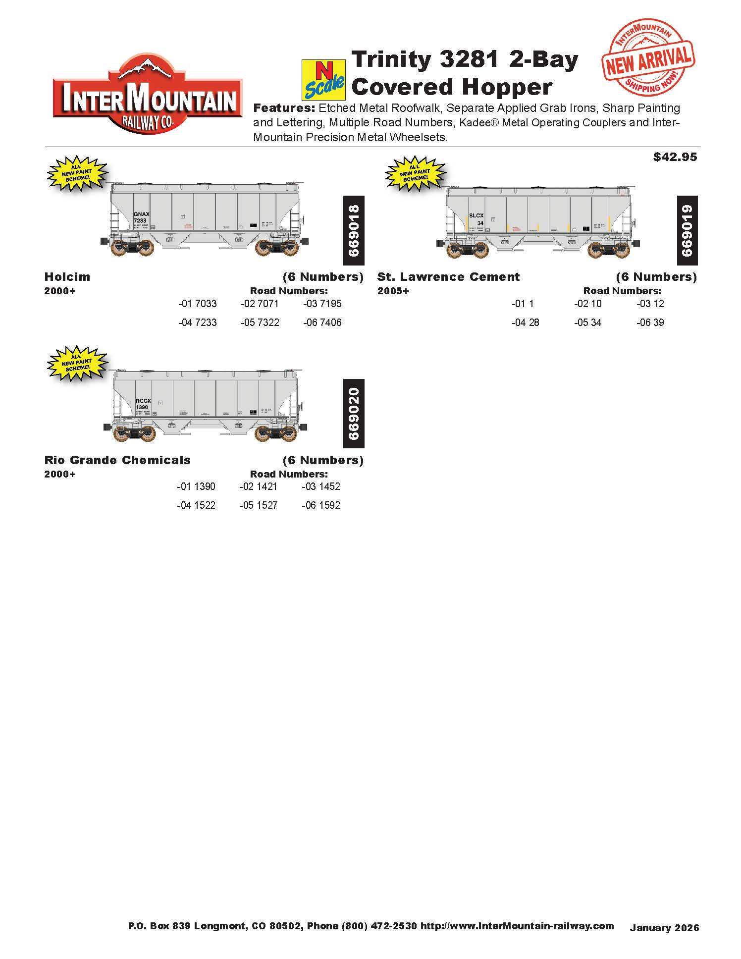 January 2026 Product Arrivals Shipping Now! N Scale 3281 2-Bay Covered Hopper N Scale 3281 2-Bay Covered Hopper